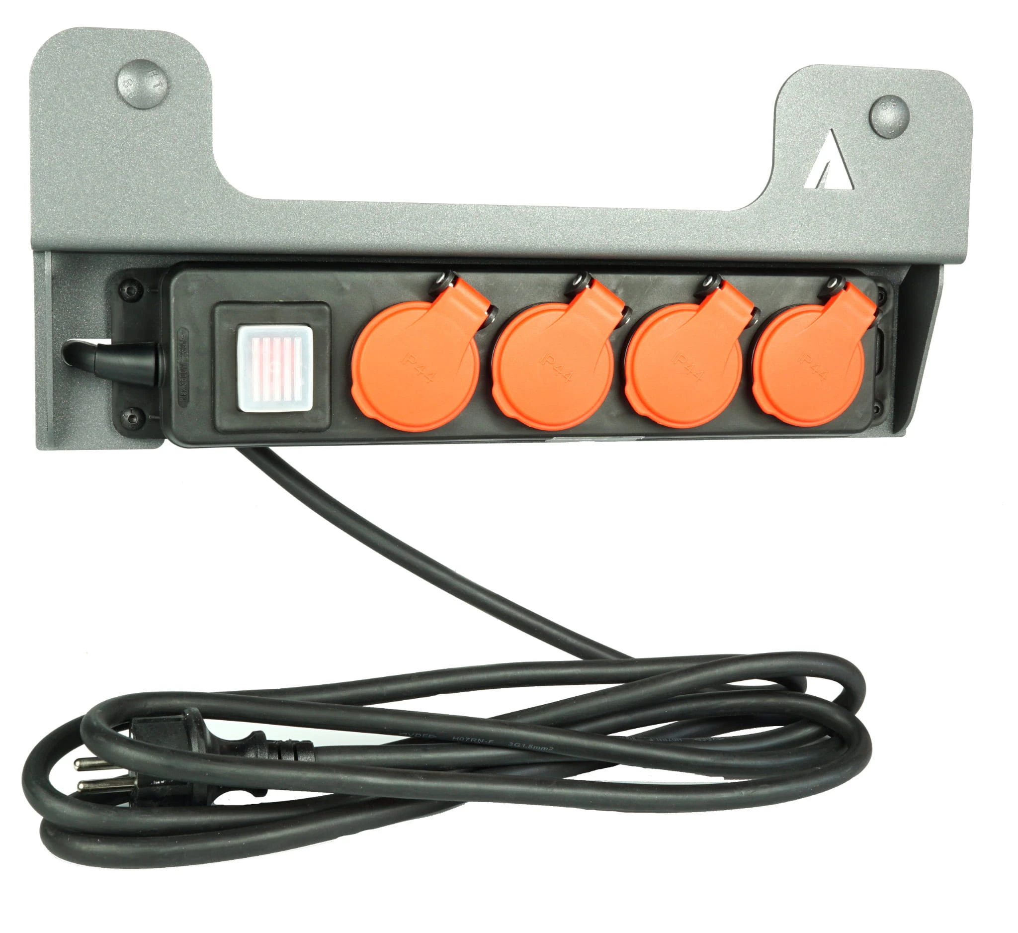 Zastosowana listwa zasilająca posiada klasę ochrony IP44 oraz klapki na każdym gnieździe. Zapewnia to odporność na pył, iskry i bezpieczeństwo pracy. Kabel zasilający ma przekrój wystarczający do obciążenia 16A i zabezpieczony jest gumą (typ przewodu H07RN-F).