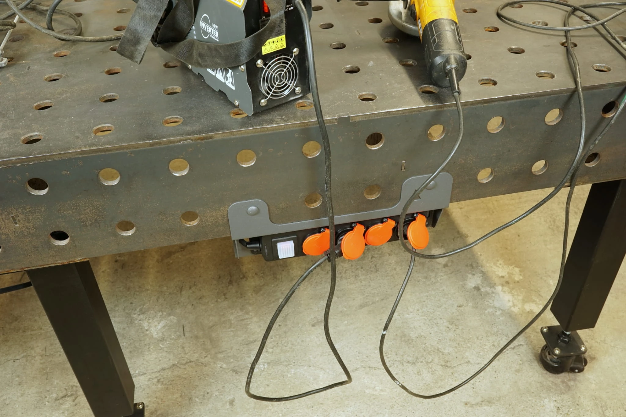 Montaż listwy zasilającej pod krawędzią stołu prowadzi do znacznego wzrostu bezpieczeństwa i ergonomii stanowiska pracy. Koniec z przedłużaczami podłączanymi z dala od stołu, koniec z kablami leżącymi na podłodze! Wystarczy raz doprowadzić zasilanie pod stół, podłączyć listwę zasilającą na stałe i od tego momentu zasilanie elektronarzędzi dostępne jest zawsze pod ręką, w sposób bezpieczny, bez kabli plączących się między nogami.